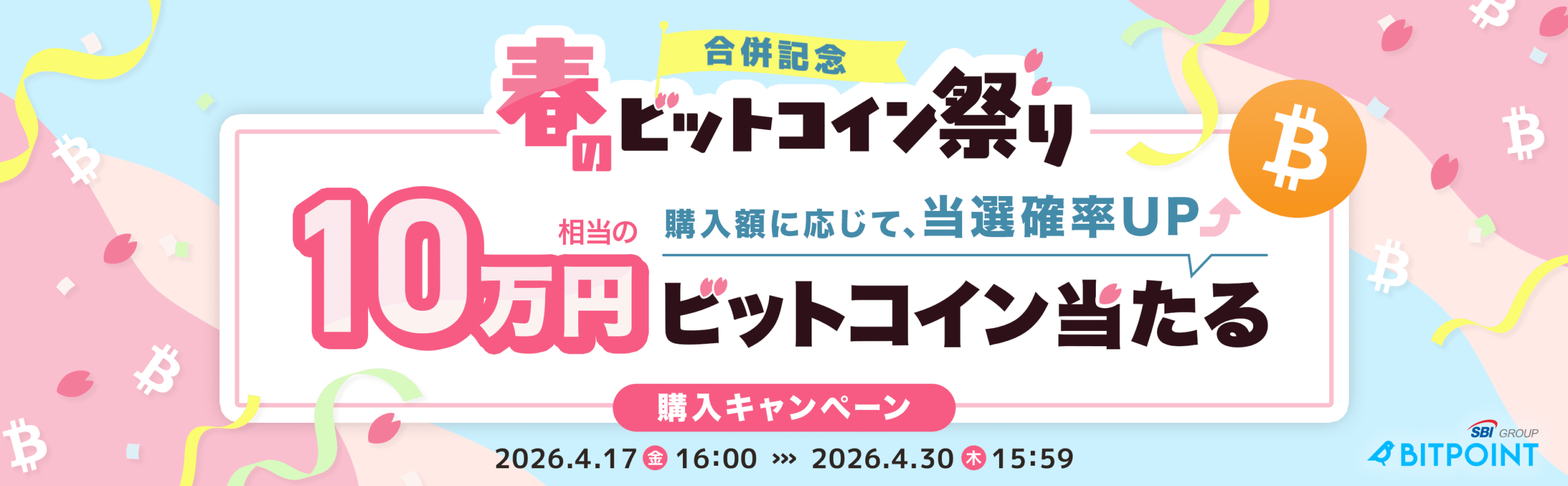 キャンペーン期間中にビットコインを1万円以上購入したお客様の中から抽選で5名に10万円相当のビットコインをプレゼント!